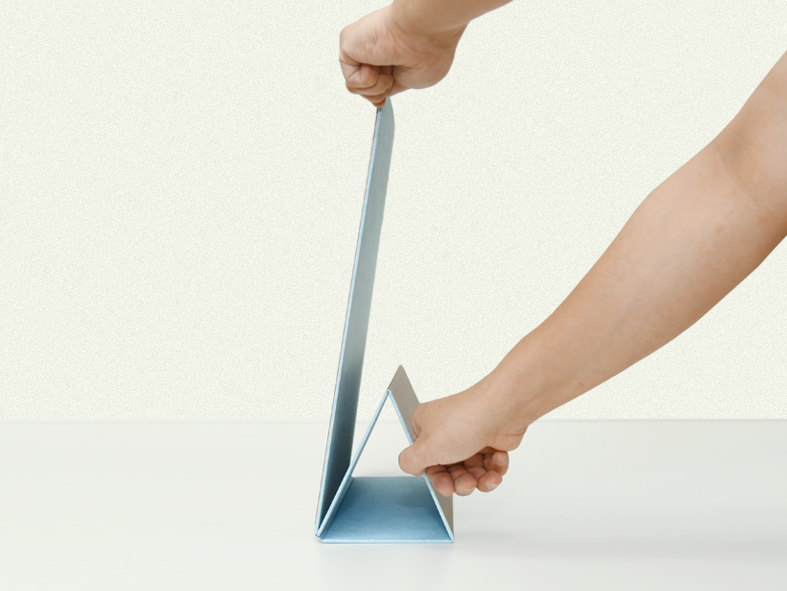 折りたたんだ状態の厚みはわずか8mmの薄型設計で本棚などに収納・保管ができます。